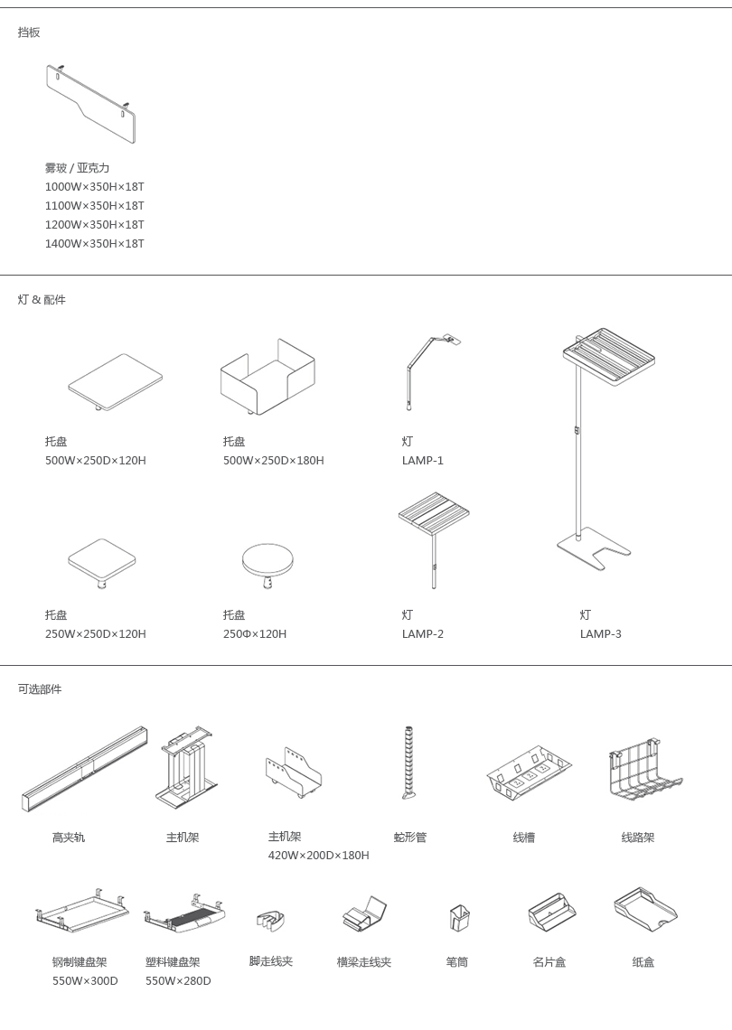 2、桌面屏风,多种选择:板材、玻璃、亚克力、吸音板、多功能挂槽;