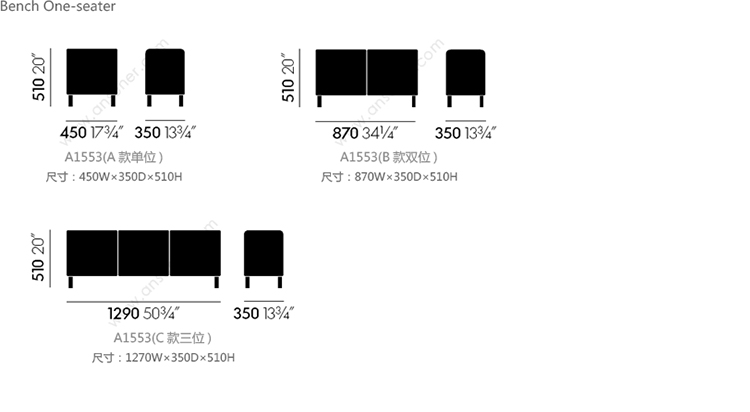 Bench One-seater 系列尺寸/示意图