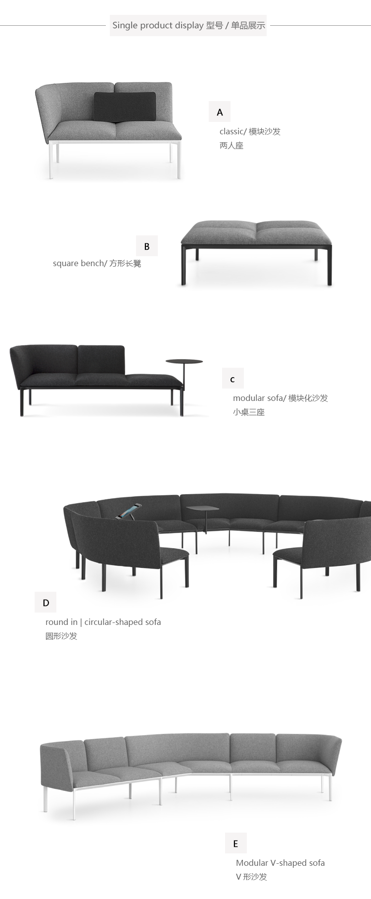 由三个字母和创造力形成,具有多功能性和灵活性,从安排,分离,改变中获得乐趣,无论是餐厅的休息区还是候车室,都是一种创新方式的完美综合,它可以感知室内模块化系统,并配备不同高度的小桌子。在一个数不清的组合中,很好地满足了当代工作环境和空间共享的需要。