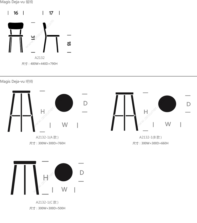 Magis Deja-vu 系列尺寸/示意图