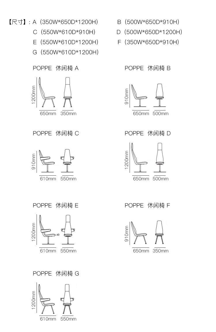 POPPE  休闲椅 系列尺寸/示意图