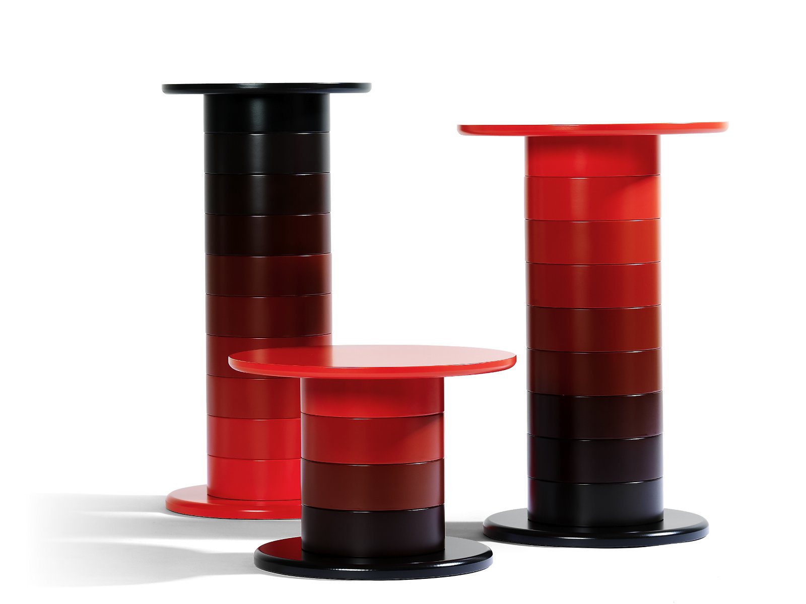Babel -Babel是带有压模桦木环的柱形桌,漆成不同的NCS颜色。每个环增加95毫米。Babel可用于各种应用,例如小型茶几或高矮的茶几。吧台桌。模压桦木帘布层的环。用黑漆或镀铬钢覆盖的MDF踏板。用UV漆MDF制成的桌面。标准色标从黑底到白底或黑底到红顶。底脚板覆盖在黑色粉末漆或铬钢。