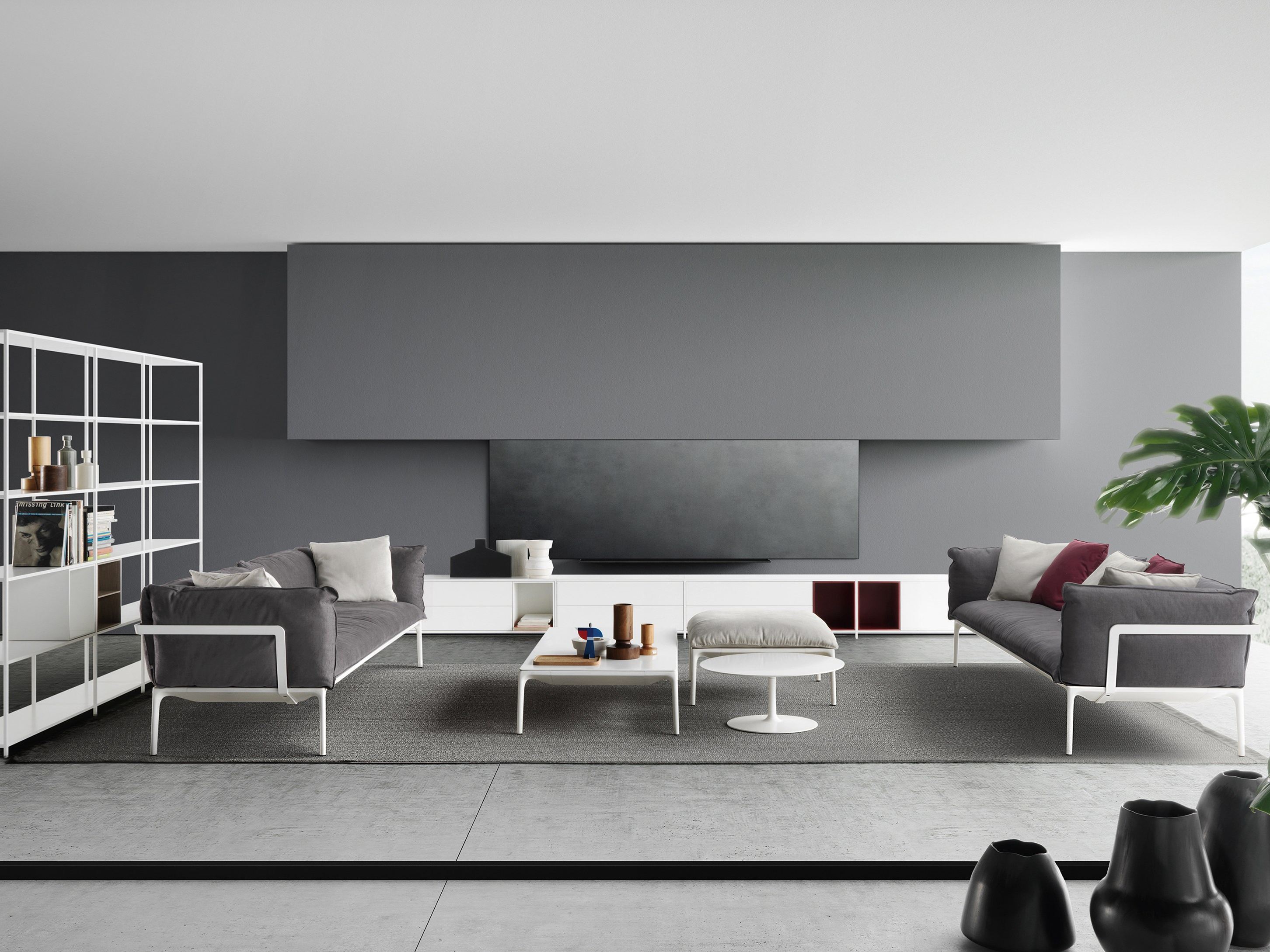 低咖啡桌,在矩形和正方形的形状 框架 在挤压铝和腿在压铸铝,涂漆无光泽白色。 上衣 在白色树脂,厚度9毫米 DIMS H 30厘米:44x150厘米,75x150厘米,75x75厘米和140x140厘米。H 19厘米:75x75厘米和140x140厘米