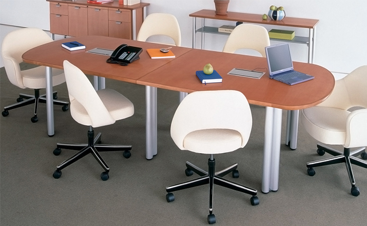 In his groundbreaking collection of 1957,Eero Saarinen transformed executive seating into a fluid,sculptural form.Recognizing the importance of user comfort,Saarinen became the first to construct a chair shell from fiberglass,a pliable material that flexes the In response to body weight. The chair is available with and without very different,and the features metal or wood legs,or a swivel base.The armless chair with a plastic back, ideal for cafe applicatons,is a recent reintroduction.