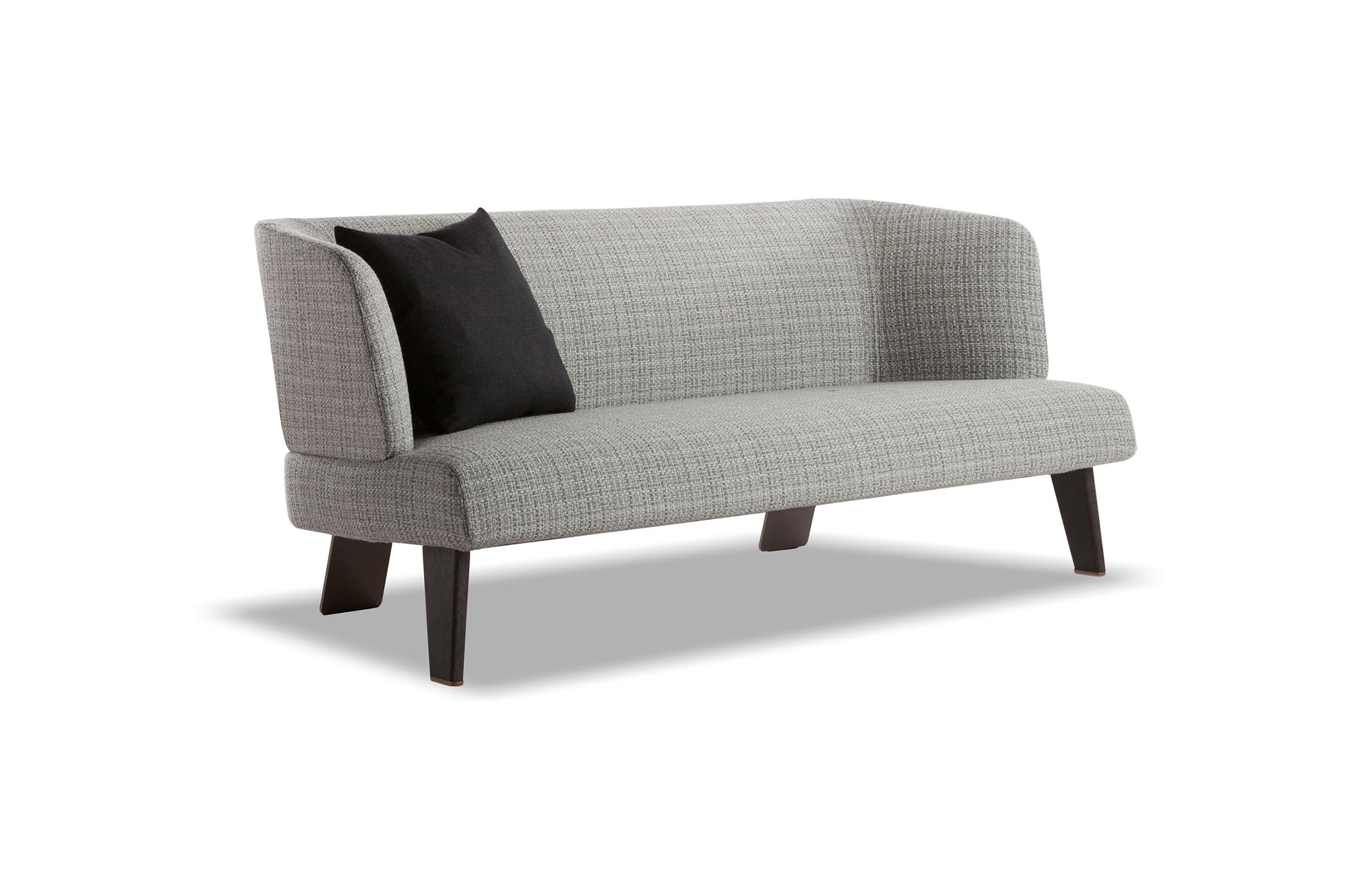 Creed “Lounge”沙发后方的地面支撑采用做工考究的弯曲金属架并搭配浅铜色亮光漆,前方支撑腿则为米灰色的鲍迪豆实木材质。支撑腿的上下方均采用精致的金属部件并搭配浅铜色亮面漆,用与众不同的细节设计来展现非同寻常的高超工艺。