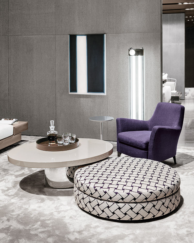 体积与造型的游戏,大胆的不对称性,一切似乎是对地心引力的挑战。这就是Raymond的美学理念。这款产品有两种高度可供选择,61厘米和74厘米。椭圆的造型是基座和台面的主题元素,基座采用镀铬金属制成,台面的亮光漆色彩缤纷:白色,Sand色,紫色,绿色和花岗石色。