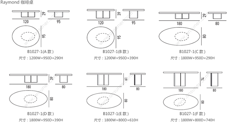 Raymond 咖啡桌 系列尺寸/示意图