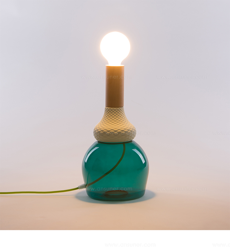 造型如复古的瓷器,带有软木材质的自然材料,可以协调和放松照亮您的环境,长200cm的彩色织物电线,可以在房间中自由移动和放置。