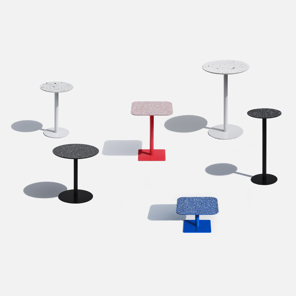 本产品采用了混凝土掺入石英粒的水磨石,随机分布的石英为家具提供了足够的装饰,既简朴又精致。 水磨石板材与支架通过巧妙的结构连结,垂直错开的支架使产品整体更具形式感。 倒角使得整体更具细节,利落的直线,是本土创造追求并相信的简单,和直接的材质表达的手法,没有多余的装饰造型线。