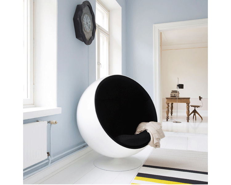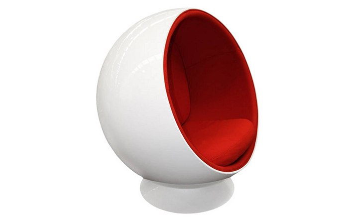 “球椅”是介乎于家具和建筑之间的一种产品,它好像“房间里的房间”,椅子很矮,坐进去,就仿佛陷入另外的一个世界,能迅速拥有安静舒适的环境,外界的噪音也被抵挡住。可以躲在里面冥想、放松身心,或者打私人电话。设计师阿尼奥就在自己那把原版的“球椅”内壁上装了一个红色的电话机,“球椅”提供一个相对私密的空间。椅子底部有轴,能360度旋转,坐在里面的人向外看,眼前的风景会随着转动而改变。这样,即使蜷缩在椅子里,也不会有与外界完全隔离的孤独感。就是这样一个狭小的空间,却带给了人们无比的安全感与舒适感,也就是这把椅子的诞生,掀开了“PODLIFE” 的篇章。"