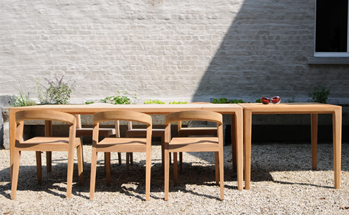 Elegant massive wooden table with an unique contemporary design,rounded edges at the table top and refined table legs.