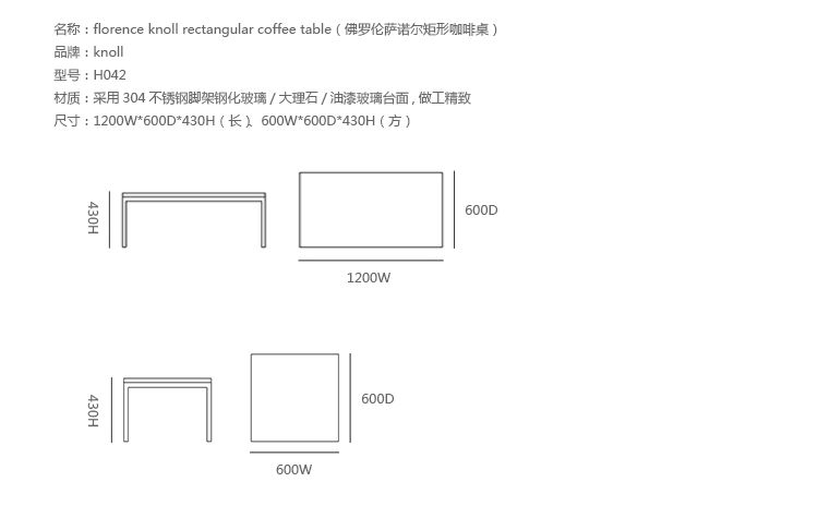 Florence Knoll Coffee and End Tables,designed to furnish the new interiors of postwar America,are scaled-down translations of the lines,gestures and materials of modern architecture.Consistent with all of her designs,the tables have a spare,geometric presence that reflects the objective perfectionism and rational design approach Florence Knoll learned from her mentor,Mies van der Rohe.