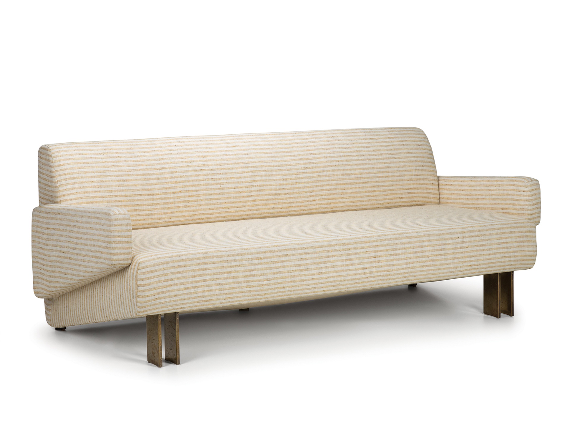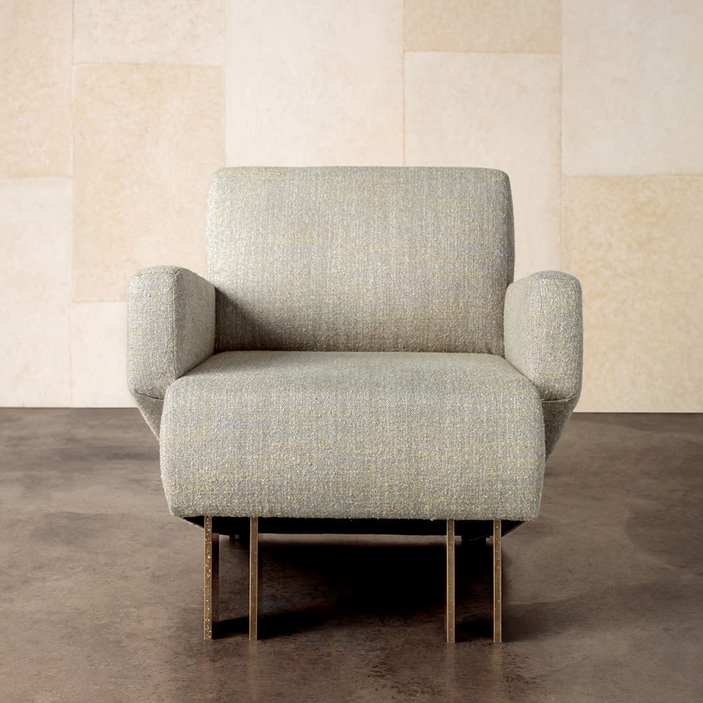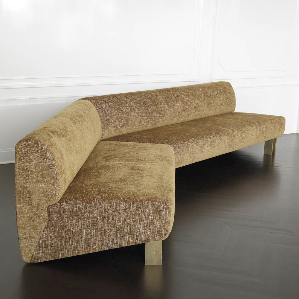 Zephyr Sofa拥有独特的现代和雕塑风格。 26英寸深的座椅深度,结合低腰背和锥形扶手,使这款球杆椅非常适合正式和休闲座椅。 铸造黄铜腿展现出手工锤击纹理,赋予建筑细节。 硬木框架采用双向榫钉,配有8向手动弹簧,可延长使用寿命和性能。