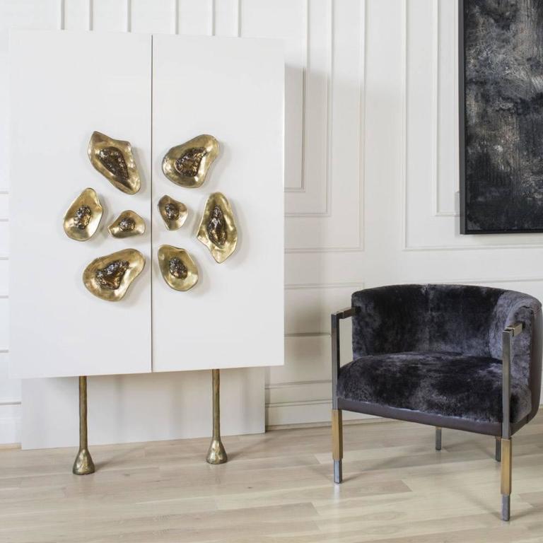 Larchmont Settee实现了形式和功能的无缝共存,从前现代主义建筑风格中汲取灵感,特别注重物质性和几何性。 这款双人长靠椅采用方形外形不锈钢框架,饰有Pewter Patina,和抛光黄铜套管细节。