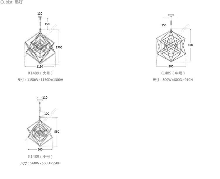 Cubist 吊灯 系列尺寸/示意图