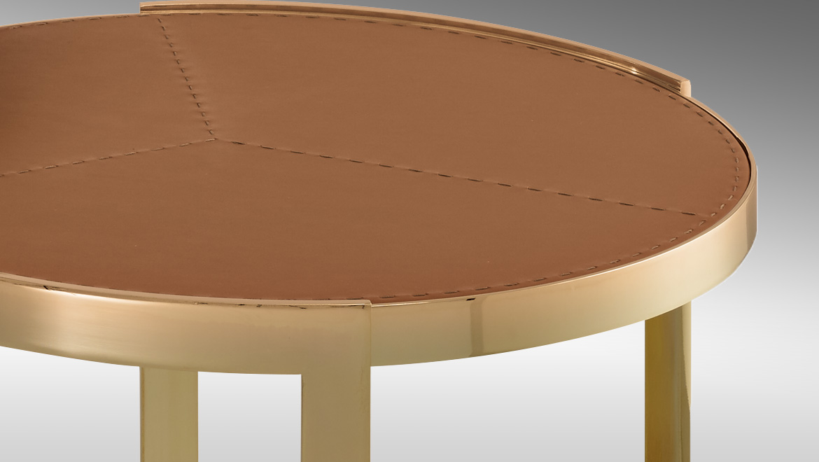 Anya是用橄榄绿或茶色玻璃制成的新顶部的茶几,与黄铜的结构形成对比。一种最小的装饰元素,使顶部的磨削能带来无可挑剔的工艺。