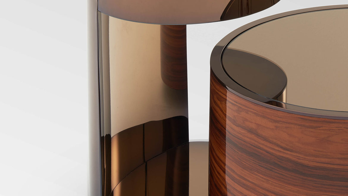 TOP Wood covered with extra clear mirror, smoke grey or bronze coordinated