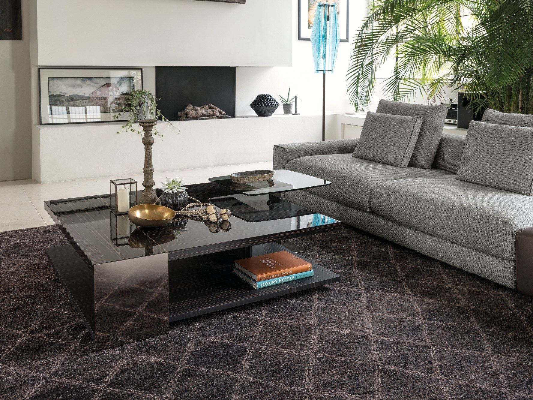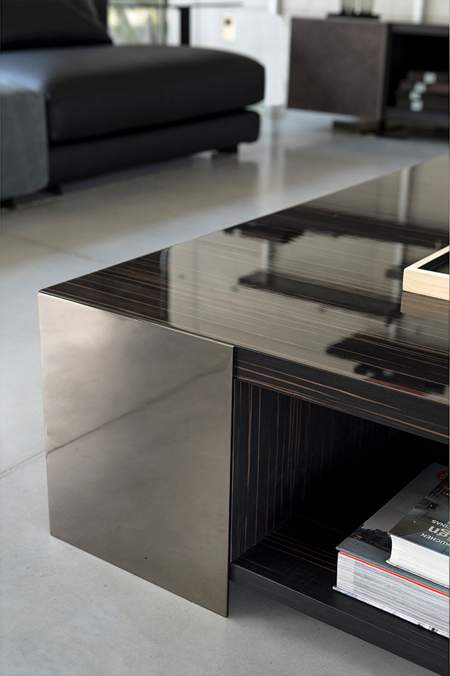Noth桌子可以为客厅提供功能性和现代风格。金属结构是由云母棕色、氧基灰色或黑色的镍制成,用于固定由莫卡橡木、柚檀木或光泽乌木制成的桌面。开放的空间和几何设计,使Noth桌子可随意的安放在客厅或和沙发进行搭配。