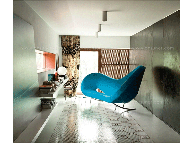 victoria & albert sofa(维多利亚和阿尔伯特沙发)系列提出一种创新,但舒适和舒适的设计,设计者是以色列著名设计师Ron Arad。设计造型为两张扶手椅伴着一个沙发,能够调解的设计和功能相结合的研究和技术保证舒适和舒适的地方休息。取名是为了向对伦敦著名的"Victoria & Albert"博物馆致敬。被誉为 20 世纪最重要的设计师之一,Ron Arad 出生在特拉维夫,在搬去伦敦前,就学于耶路撒冷艺术学院,在建筑电讯派创始人彼得·库克下学习设计。Ron Arad 成功地建立了独特的设计风格,使用的材料和概念的非正统组合。制作采用防霉实木内框架、进口羊毛绒布、内部填充高密度沙发棉、不锈钢脚架。