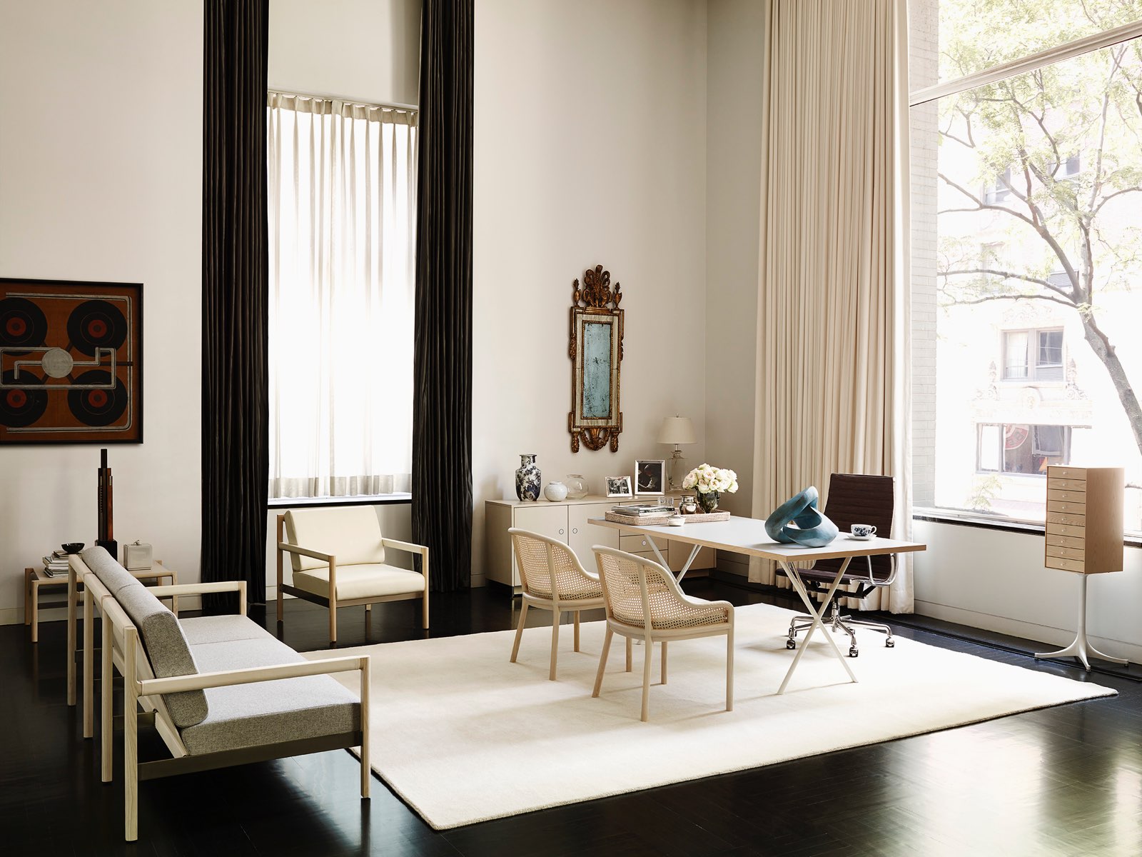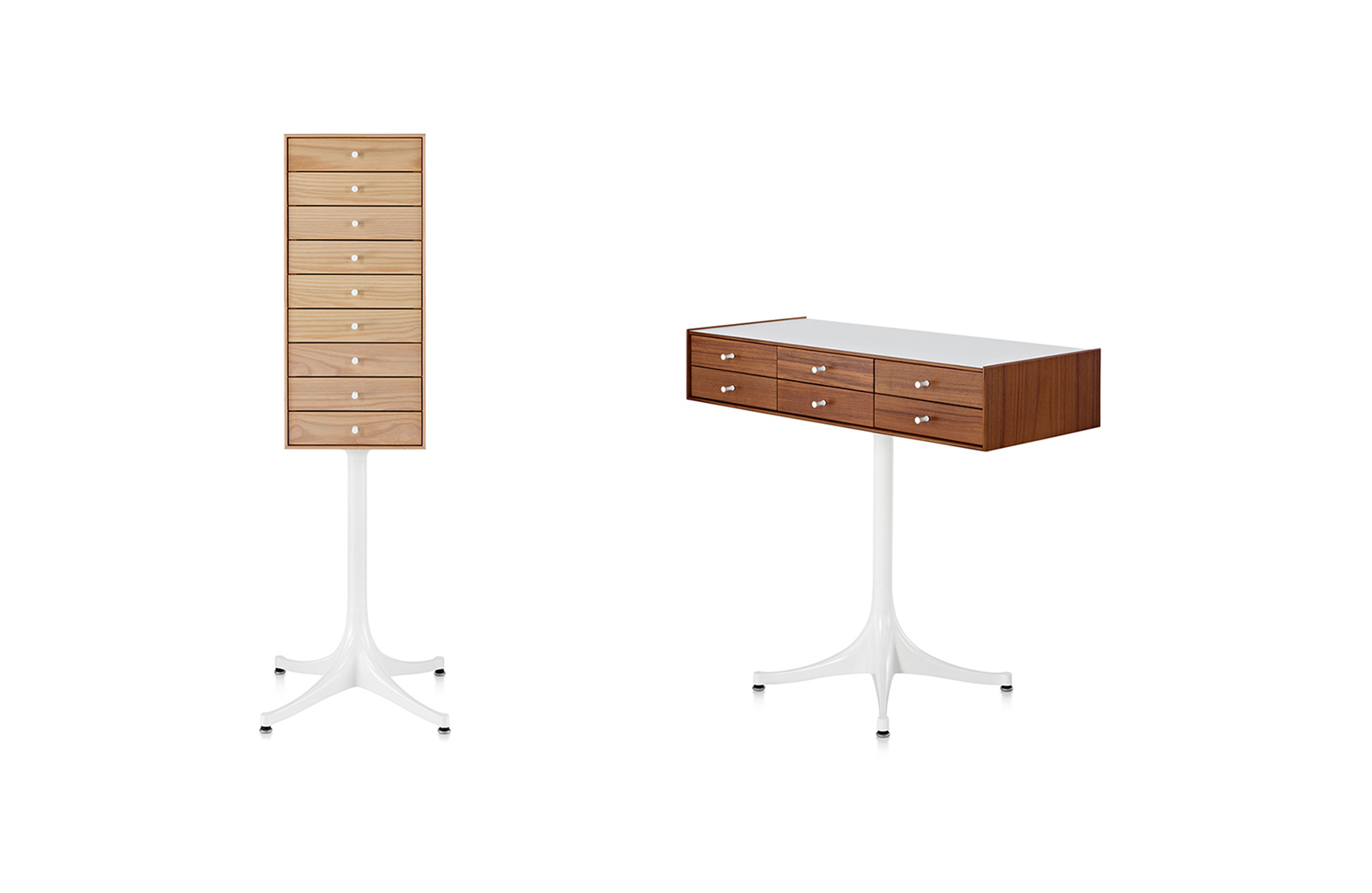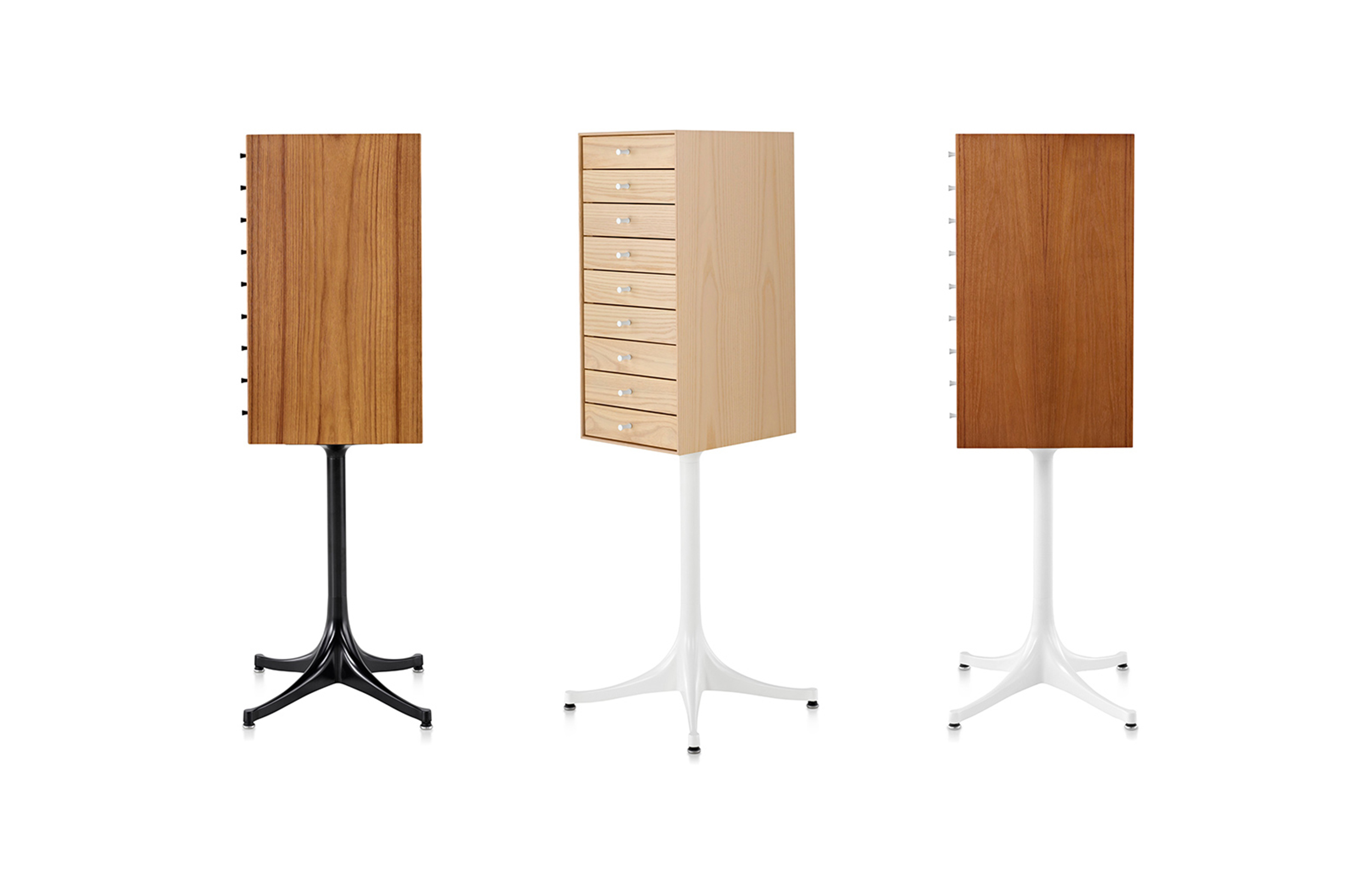 乔治·尼尔森(George Nelson)是美国极具影响力的建筑师、家具设计师和产品设计师,日本对George Nelson有着深远的影响。在他于1951年第一次到东京旅行,以及之后在那里的十几年,George Nelson迷上了日本的所有东西。这种影响最明显的的他于1952年设计的迷你箱。迷你箱的神奇处是可用来存放各种物品,是一个很多小抽屉小储物柜,方便您分类摆放各种生活物品。尼尔森设计的迷你箱最让人惊奇的是它几乎可以摆放在任何房间,无论是卧室,办公室,客厅等等任何您需要的地方,美观且不失和谐。每个抽屉都是木工们细心的安装设计,以保证高品质。抽屉采用胡桃或樱桃木皮贴面,基材为环保高密度板环保油漆喷涂、铸铝烤漆可调节脚架(4星级铝底座)、或玻璃钢一体成型脚架,抽屉贴心的配置有金属旋钮,方便打开与关上。