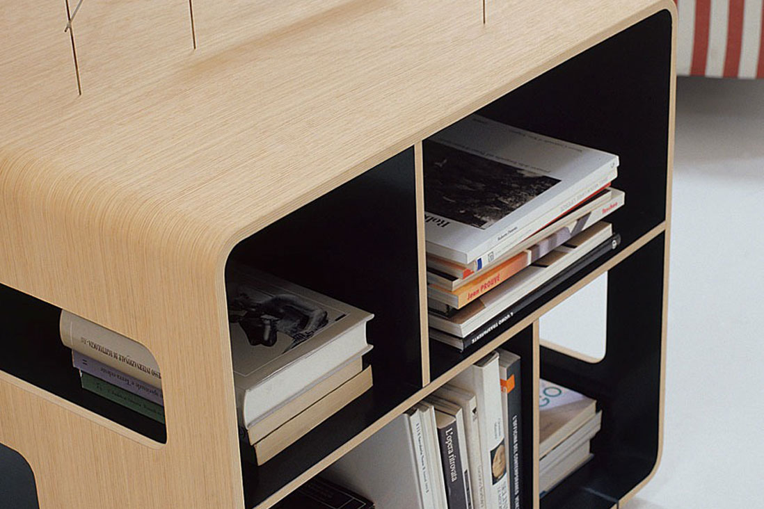 元素出生系列配备沙发阿恩和扩大垂直arredative质量:一个书架,一个较低的水平,一个旋转的容器,或可结合自己的工作计划,也可用作为复古沙发因为能够效仿的趋势曲线,和一个低表。从木材的使用都具有弯曲和一个空隙充满游戏和相关的支持,使他们在视觉上的钢筋钢,重量轻.