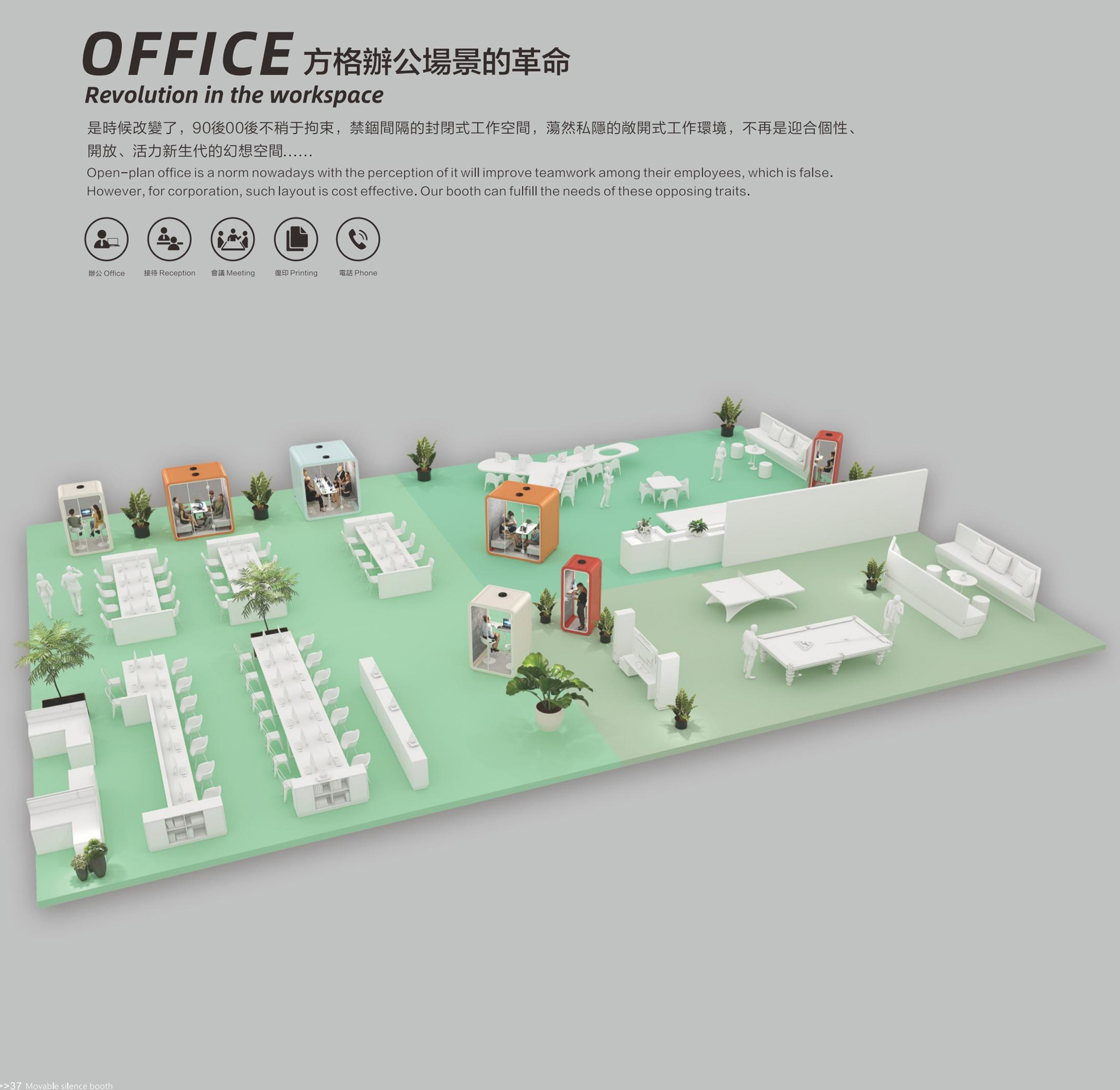 一个灵动的安静空间,满足您无限创想不传统的碳塑复合板、航空铝、隔声玻璃是它的主要组成,SOLIDWORKS软体力学建模让仓体组装仅需一种紧扣件,INSULMARSHALL ACOUSTIC 声学模拟设计准确预知并实现了舱体隔音和舱室音环境指标,它是一个强大,尽管它不是最完美的迷你空间,仓体采用可循环碳塑再生材料 SR系列 静音仓推崇低碳、简约、安全、实用主义优化非必要的功能和配置。从薄的全R角外观和互雅配色让它更精致、融入环境。